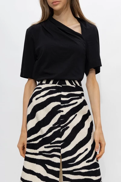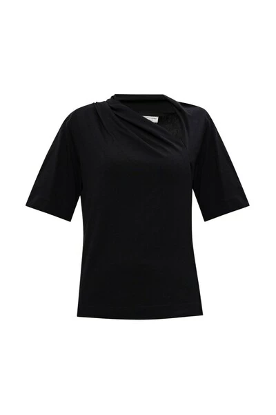 Zwart t-shirt van Dries Van Noten. Gemaakt van katoen, dit ontwerp met korte mouwen heeft een asymmetrische nek met verzamelingen.