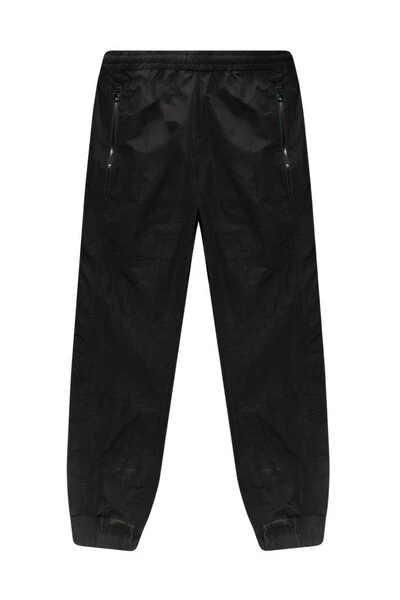 Zwarte baanbroeken van Dries Van Noten met een taille, elastische manchetten, twee ritszakken aan de voorkant en twee slipzakken aan de achterkant.