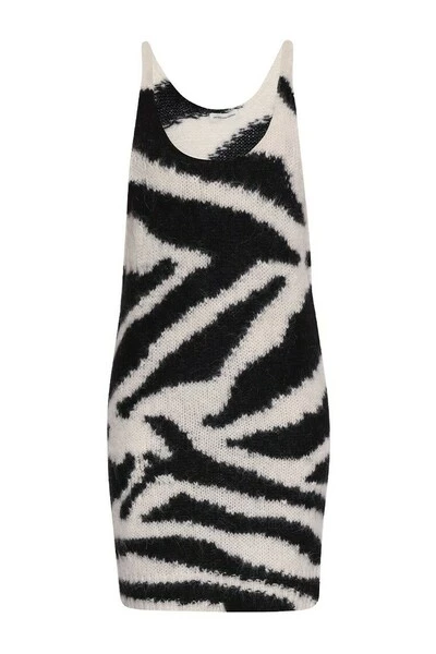Zwart -witte mini -jurk van Dries Van Noten. Dit gepaste kledingstuk heeft een dierlijk patroon en een ronde nek.