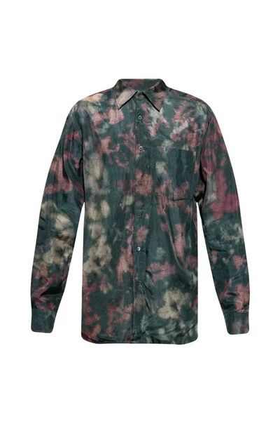 Gemeenschappelijk, loszittende shirt van Dries Van Noten. Gemaakt van zijde met katoenen voering, dit kledingstukken heeft knoopbevestigingen, voorzak en lange mouwen met manchetten met knoop.