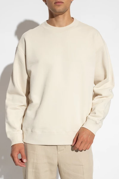 Licht beige crewneck sweatshirt met een geribbelde zoom en manchetten van Dries Van Noten. Gemaakt van katoen.