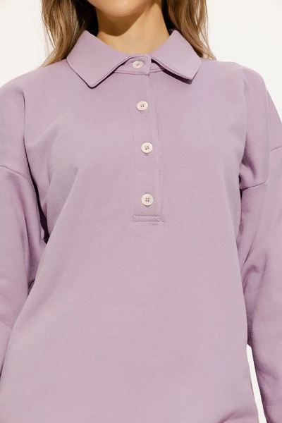 Paars loszittende sweatshirt van Dries Van Noten. Gemaakt van katoen, dit ontwerp met lange mouwen beschikt over een geknoopte kraag en geribbelde randen.