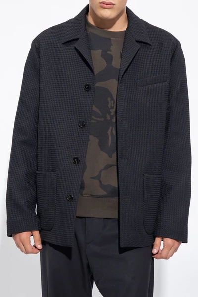 Black Blazer van Dries Van Noten. Deze stijl is gemaakt van een gestructureerde wolmix en heeft knoopbevestigingen, lange mouwen en drie slipzakken.