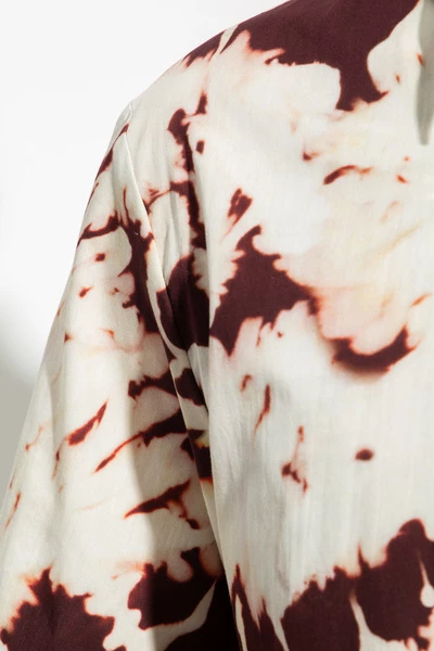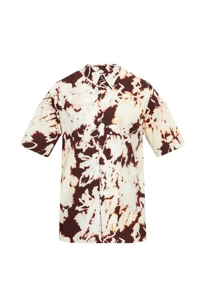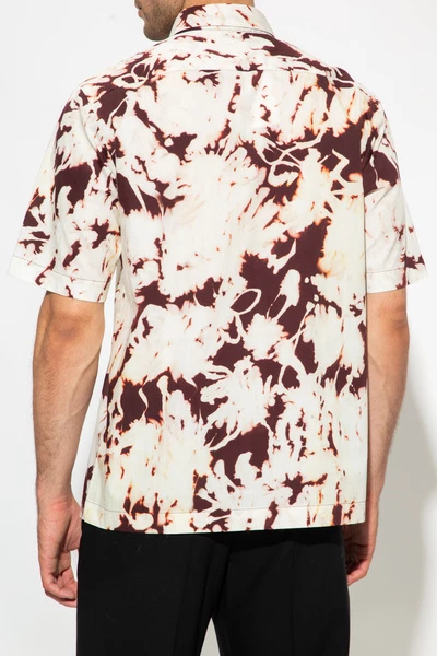 Crème shirt van Dries Van Noten. Gemaakt van katoen, dit ontwerp met korte mouwen is versierd met een kastanjebruine patroon.