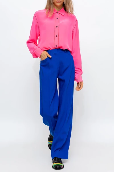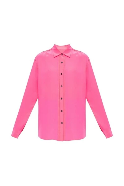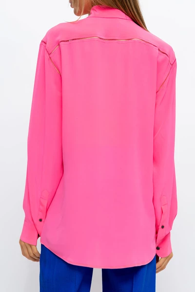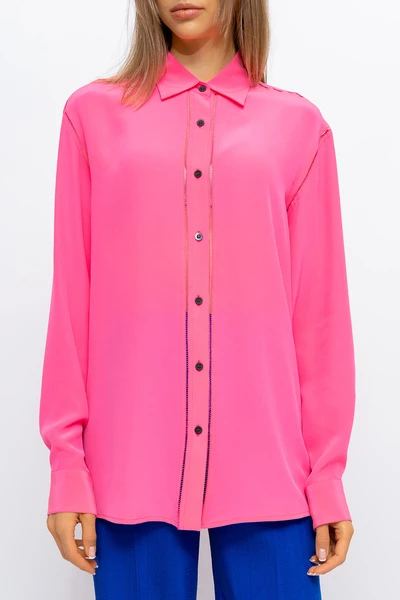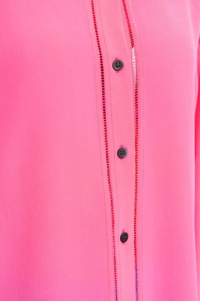 Roze shirt van Dries Van Noten. Gemaakt van zijde, dit kledingstukken heeft knoopbevestigingen, decoratieve stiksels en lange mouwen met manchetten met knoop.