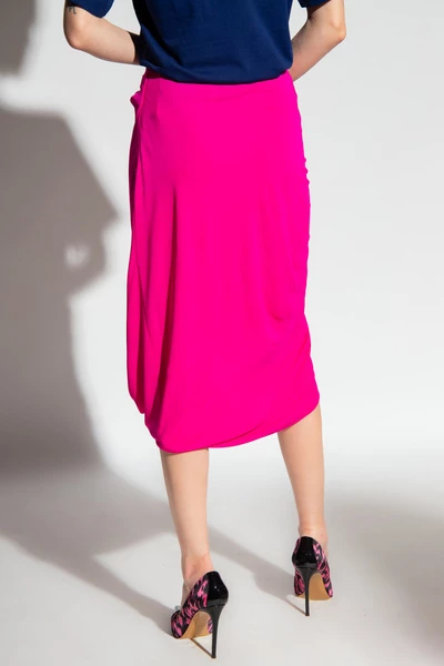 Roze asymmetrische gedrapeerde rok met een zijzip van Dries Van Noten.