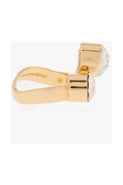 Goud-tone ring van Dries Van Noten. Gemaakt van messing toont dit item kristalversieringen.