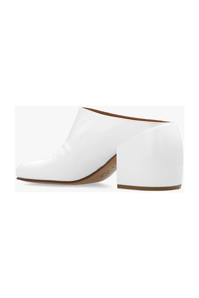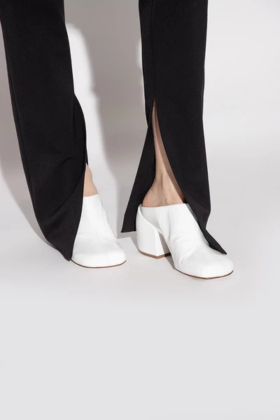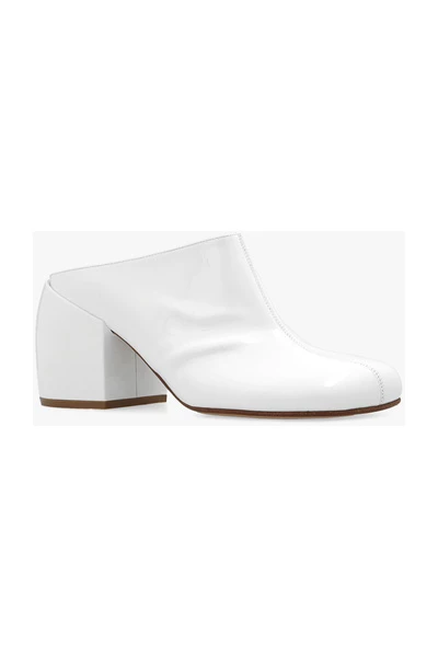 Witte muildieren van Dries Van Noten. Gemaakt van patentkalf leer, dit model bevindt zich op een beige lederen zool.