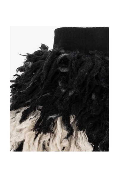 Zwart -witte sjaal van Dries Van Noten. Distingusihed by Frited Detailing, dit item heeft een verstelbare knoopbevestiging.