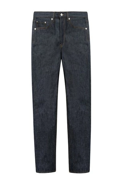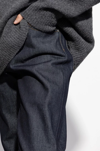 Navy jeans van Dries Van Noten. Bevestigd met knoppen, valt dit paar naar beneden met lichte taps toelopende benen en is compleet met drie voorzakken en twee achterzakken.