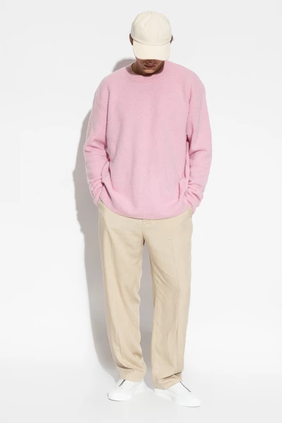 Lichtroze trui met een ronde nek en lange mouwen van Dries Van Noten. Gemaakt van een wol- en kasjmiermix.