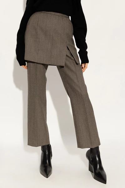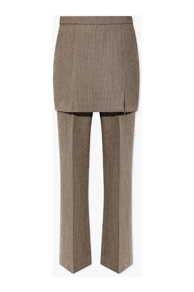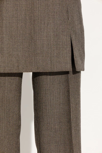 Zwart, beige en grijze plooienbroeken van Dries Van Noten. Gemaakt van wol, dit rechte beenontwerp heeft een zip- en knoopsluiting, controleer het patroon en twee voorzakken.