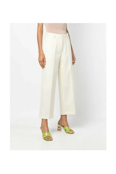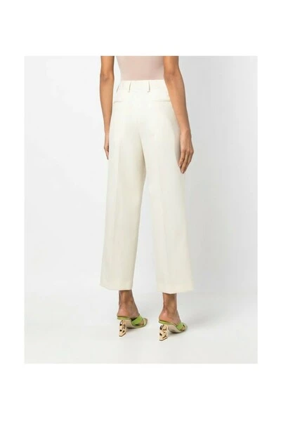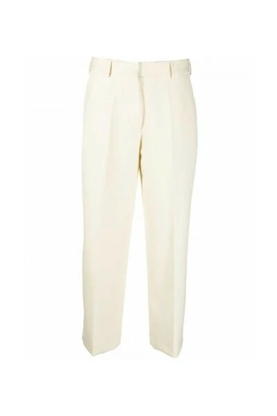 Cream Pleat-front broek van Dries Van Noten. Gemaakt van wol, dit paar beschikt over een ritssluiting, haak en knoopbevestiging, twee voorzakken, twee achterste zakken en rechte benen.